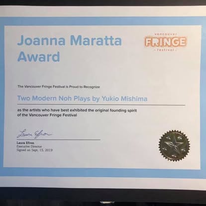 - CJSF 90.1FM – “Vancouver Fringe Festival: Two Modern Noh Plays”, Sept 5, 2019.